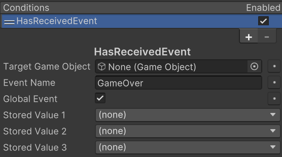 The Has Received Event condition can then be used to receive the event: